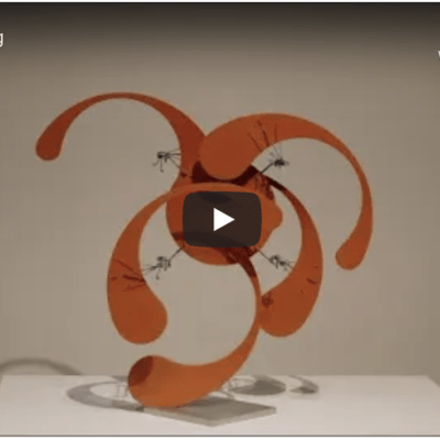 Please note: Due to the fragility of some of the works in Moving Vision, nine motorized sculptures operate for a limited amount of time every thirty minutes. Look for the green LED lights at the base of the sculpture to locate the works that are operating. Operating times are staggered so that visitors can see each work in motion during their visit. Videos are also continuously running next to each motorized work. Due to conservation concerns, Fletcher Benton’s Synchronetic R-1000 (Rolling Discs) is not routinely operational.